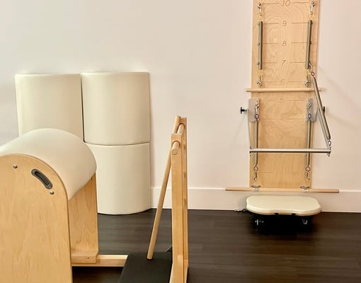In a garden setting, located in Wine Country's Newberg Oregon, The Studio is filled with the highest quality of Pilates apparatus and other essentials, featuring: STOTT PILATES® Professional Reformers, Stability Chair, HALO trainers, rotation disks, Balanced Body® Ladder Barrel, Ellie Herman Spring Boards with push-thru-bar, Bodhi Suspension System, Precor Commercial Adaptive Motion Trainer, Fully adjustable Pro inversion table, and Joan Briebart's TYE4, and Parasetter®. Additionally, many small tools and props allow each class or session to be highly personalized.